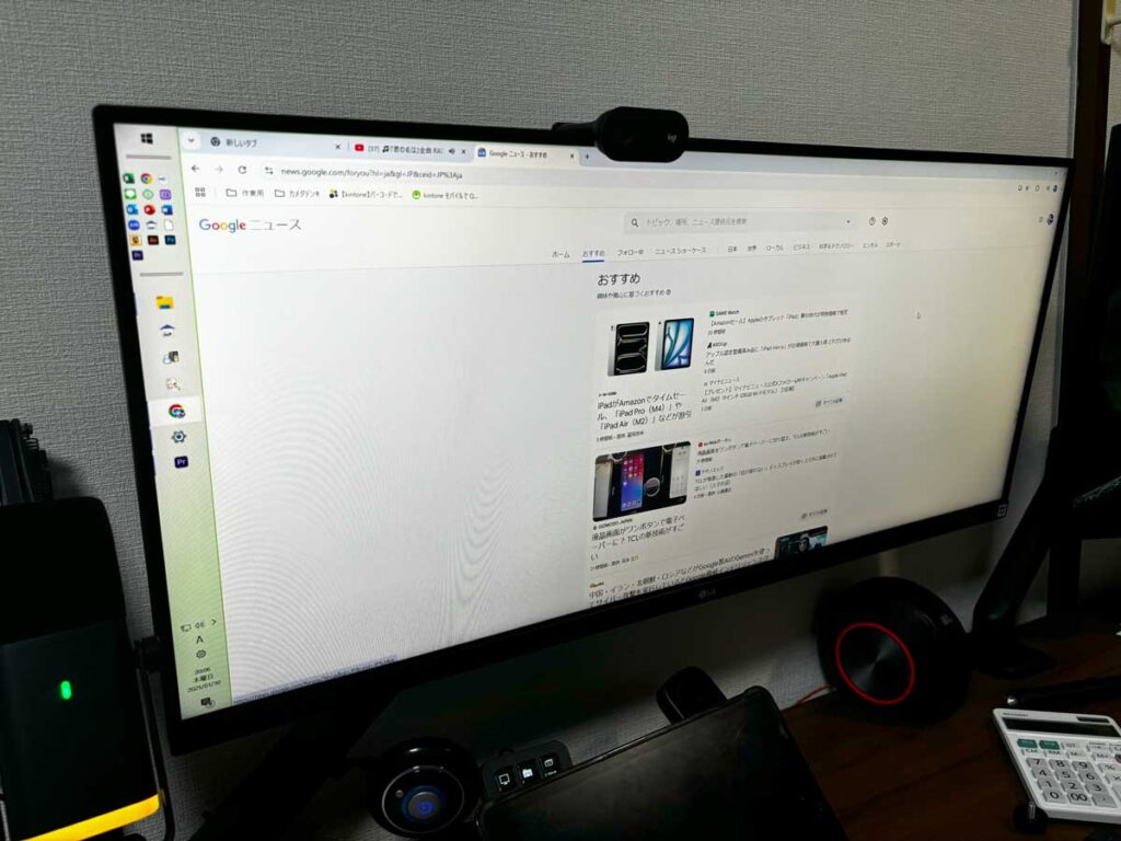 ウルトラワイドディスプレイは横幅が広く、縦幅が通常のディスプレイの長さなので、いろいろな面で恩恵が出やすいデバイスだと思います。
